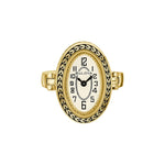 Bulova Art Deco Ring (Artikelnummer: 97L188) ist eine außergewöhnliche Damenuhr im ikonischen Stil der 1920er Jahre und vereint Schmuckstück und Zeitmesser in einem eleganten Design. Inspiriert von einem historischen Bulova-Modell aus dem Jahr 1923 präsentiert sich die Bulova Art Deco Ring in goldfarbenem Edelstahl mit kunstvollem Lorbeerblattmuster an Lünette und Gehäuseseite. Das ovale elfenbeinweiße Zifferblatt mit arabischen Ziffern, schwarzen Zeigern und goldfarbener Cabochon-Minuterie unterstreicht den authentischen Art-Déco-Charakter. Im Inneren arbeitet das präzise Quarz Kaliber 5R21. Ein gewölbtes, kratzfestes Saphirglas schützt die Anzeige zuverlässig im Alltag. Mit einer Wasserdichtigkeit von 3 Bar ist die Bulova Art Deco Ring spritzwassergeschützt und alltagstauglich. Als Teil der Bulova Archive-Kollektion verbindet die Bulova Art Deco Ring historisches Design mit moderner Verarbeitung.