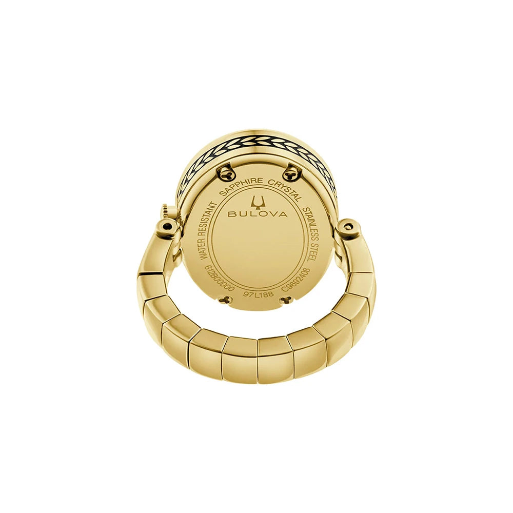 Die Bulova Art Deco Ring ist eine stilvolle Neuinterpretation eines Klassikers aus dem Jahr 1923. Mit kunstvollen Details, gewölbtem Saphirglas und goldfarbenem Edelstahl verbindet die Bulova Art Deco Ring Vintage-Charme mit moderner Präzision – ein einzigartiges Statement für Liebhaberinnen außergewöhnlicher Zeitmesser.