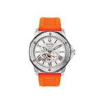 Die Bulova Marine Star überzeugt durch hohen Tragekomfort. Das Armband aus hochwertigem Silikon in Orange sorgt für eine angenehme Passform und bietet einen sicheren Halt am Handgelenk. Die Dornschließe ermöglicht ein schnelles und einfaches An- und Ablegen der Uhr. Das leichte Gewicht von 120 Gramm und die flexible Bandanstoßbreite von 24 mm machen die Uhr ideal für den täglichen Gebrauch, egal ob beim Sport oder im Alltag. Der maximal mögliche Handgelenkumfang von 230 mm sorgt dafür, dass diese Uhr auch größeren Handgelenken bequem passt.
