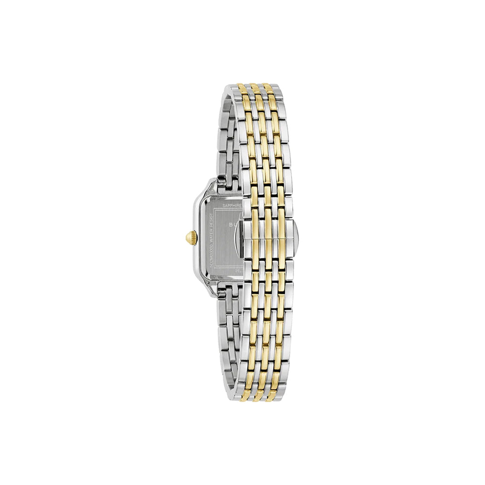 Die Bulova Sutton vereint quadratische Eleganz, präzise Quarztechnik und edle Bicolor-Details. Mit 23 mm Gehäusedurchmesser, Saphirglas und feiner Verarbeitung ist die Bulova Sutton eine stilvolle Damenuhr mit zeitloser Klasse.
