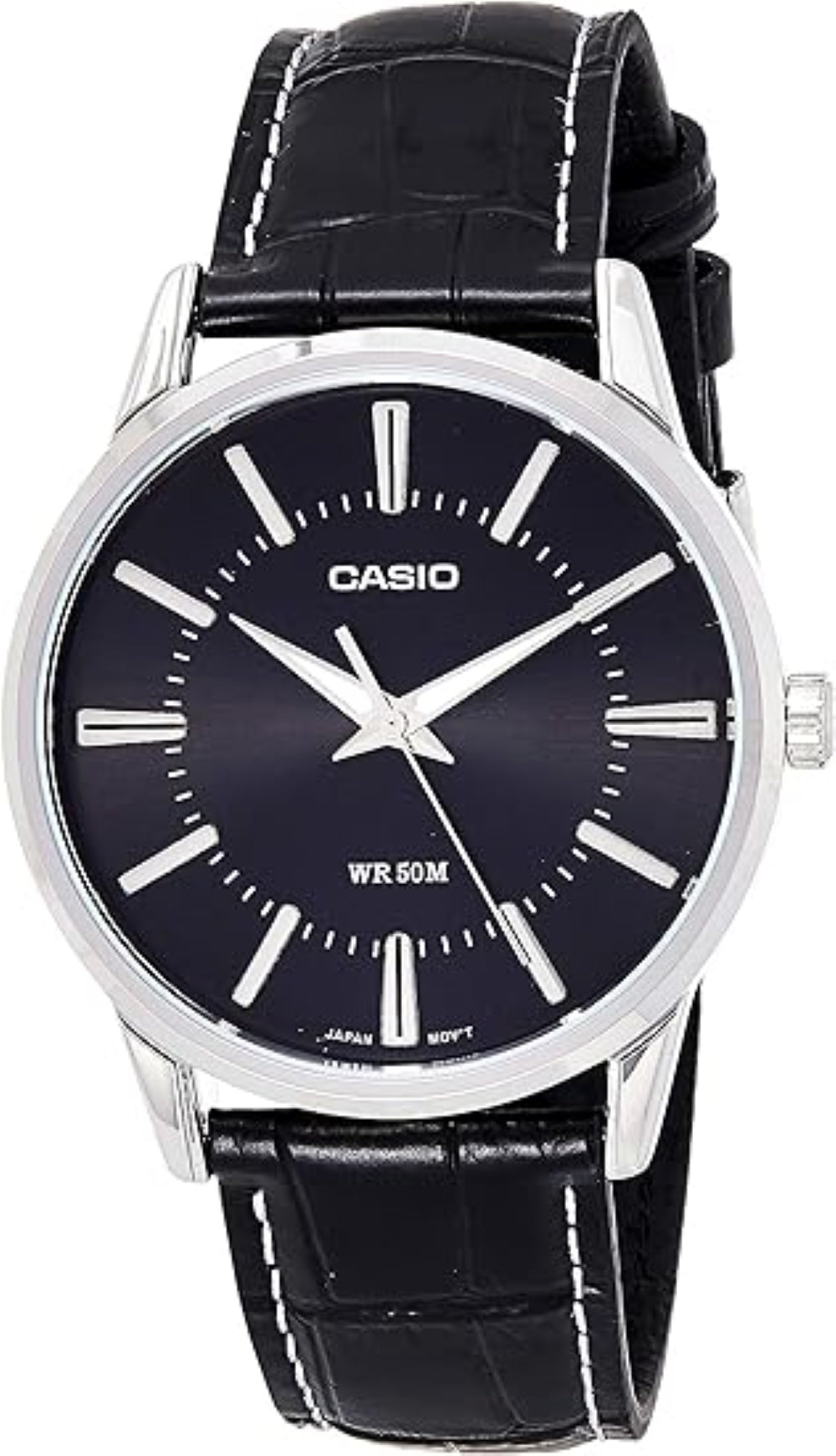 Die Casio Collection Herren Armbanduhr MTP-1303L-1AVEF ist ein zeitloser Klassiker, der durch sein schlichtes Design und seine zuverlässige Funktionalität überzeugt. Das 40 mm große Edelstahlgehäuse mit Mineralglas bietet optimalen Schutz vor Kratzern. Das schwarze Zifferblatt mit weißen Ziffern und Strichindizes sorgt für eine gute Ablesbarkeit. Die Uhr wird von einem präzisen Quarzwerk angetrieben und ist bis zu 5 bar wasserdicht. Das schwarze Lederarmband mit Dornschließe sorgt für einen angenehmen Tragekomfort und einen eleganten Look.