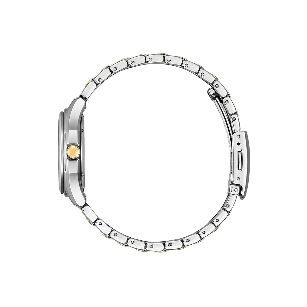 Die Citizen FE2116-85A bietet dank ihres geringen Gewichts von nur 73 g und des komfortablen Edelstahlarmbands höchsten Tragekomfort. Das silber- und goldfarbene Armband sorgt für eine edle Optik und eine sichere Passform. Das Gehäuse mit einem Durchmesser von 31,3 mm und einer Höhe von 8,6 mm liegt angenehm auf dem Handgelenk und bietet eine ideale Passform. Die Sicherheitsfaltschließe ermöglicht ein einfaches An- und Ablegen der Uhr, ohne die Gefahr des Abrutschens.