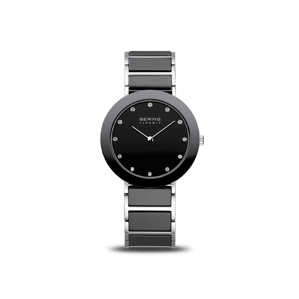 Die Bering Ceramic silber glänzend (Artikelnummer: 11435-749) vereint minimalistisches dänisches Design mit Hightech-Keramik und höchster Materialqualität. Das elegante Edelstahlgehäuse in Silber wird durch eine glanzvolle schwarze Keramiklünette ergänzt, die das moderne schwarze Zifferblatt mit funkelnden Zirkoniasteinen perfekt umrahmt. Geschützt von kratzfestem Saphirglas und kombiniert mit einem silberfarbenen Edelstahlband mit Keramikelementen ist diese Uhr nicht nur ein Zeitmesser, sondern ein zeitloses Accessoire.