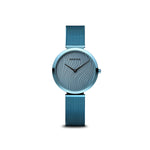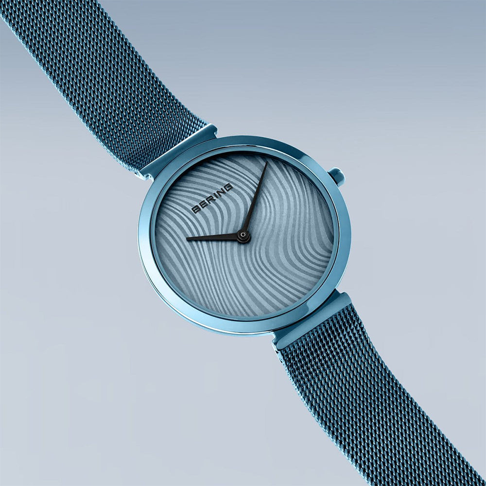 Die Bering Charity blau glänzend (Artikelnummer: 18132-Charity2) überzeugt durch ihre markante, arktisblaue Farbgebung und das auffällige Wellenmuster auf dem Zifferblatt, das durch kratzfestes Saphirglas geschützt ist. Das polierte Edelstahlgehäuse (316L) in Kombination mit dem edlen Milanaise-Armband verleiht der Uhr einen luxuriösen und modernen Look. Mit dieser Uhr setzen Sie ein stilvolles Statement und unterstützen gleichzeitig eine gute Sache.