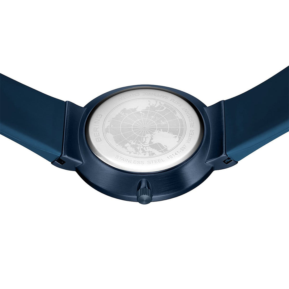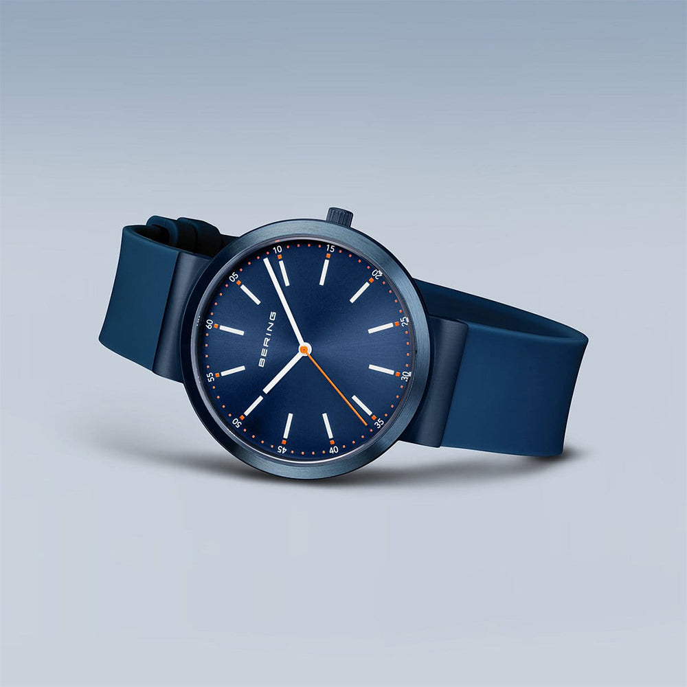 Das anschmiegsame Silikonarmband der Bering Classic blau glänzend sorgt für außergewöhnlichen Tragekomfort, auch bei längerem Tragen. Das leichte Material ist hautfreundlich und flexibel, während die präzise Verarbeitung des Gehäuses sicherstellt, dass die Uhr perfekt am Handgelenk sitzt. Das flache Design des Gehäuses unterstützt den angenehmen Sitz und macht die Uhr zu einem idealen Begleiter im Alltag oder zu besonderen Anlässen.