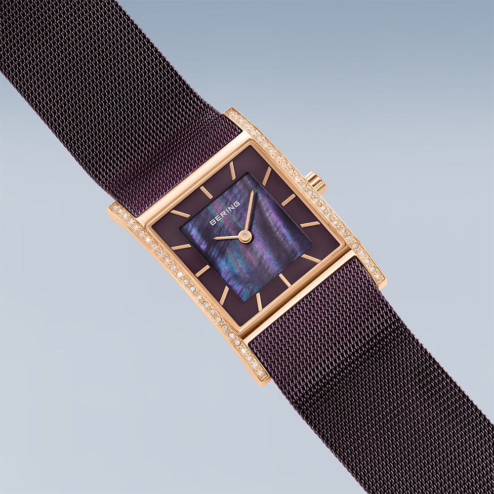 Die Bering Classic roségold glänzend (Artikelnummer: 10426-262-S) ist eine exquisite Damenuhr, die durch ihren eleganten, eckigen roségold glänzenden Edelstahlgehäuse und das braune Zifferblatt besticht. Mit einem Quarz-Uhrwerk ausgestattet, sorgt sie für eine präzise Zeitmessung. Das kratzfeste Saphirglas schützt das Zifferblatt, während das Milanaise-Armband in braun für ein stilvolles Tragegefühl sorgt. Die Uhr bietet eine Wasserdichtigkeit von 5 ATM, was sie für den Alltag ideal macht.