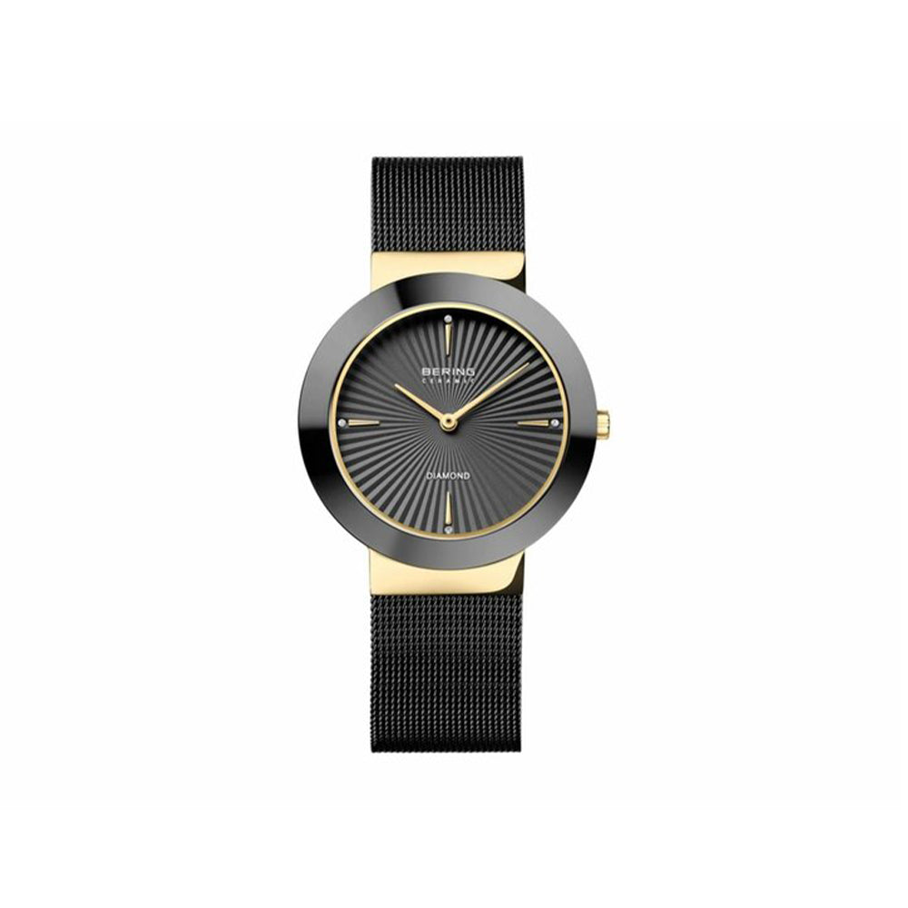 Die Bering Classic | schwarz glänzend | 11435-132 vereint harmonisch goldene Eleganz mit der kühlen Raffinesse schwarzer Keramik. Sie steht für feminine Ausdrucksstärke und dezente Extravaganz, die in jeder Alltagssituation und zu jedem Anlass einen stilvollen Eindruck hinterlässt. Diese Uhr ist mehr als nur ein Zeitmesser – sie ist ein edles Statement für Geschmack und Qualität.