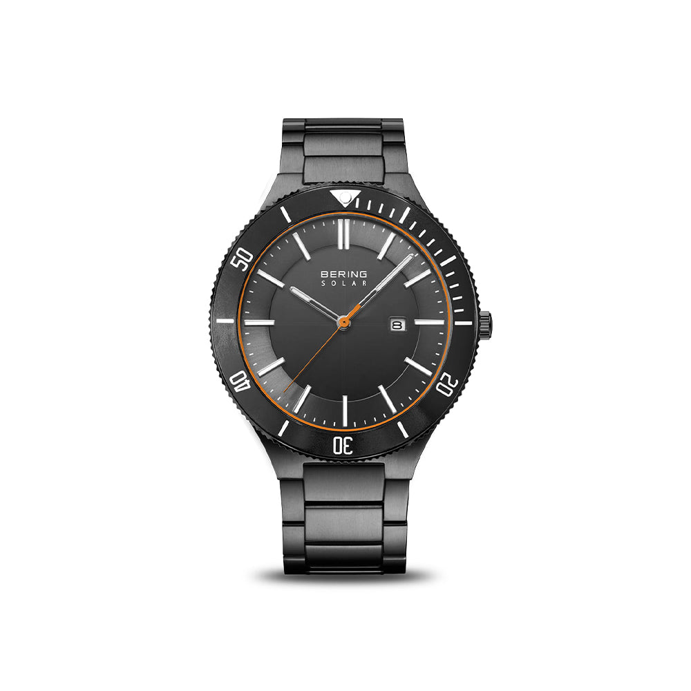 Die Bering Solar grau poliert/gebürstet (Artikelnummer: 14443-779) überzeugt durch minimalistisches Design und eine umweltfreundliche Solartechnologie. Das polierte und gebürstete Edelstahlgehäuse in elegantem Grau harmoniert perfekt mit dem gleichfarbigen Sunray-Zifferblatt, das von kratzfestem Saphirglas geschützt wird. Diese Solaruhr kombiniert stilvolle Optik mit praktischer Nachhaltigkeit und läuft bei voller Aufladung bis zu 12 Monate – ideal für Alltag und besondere Anlässe.