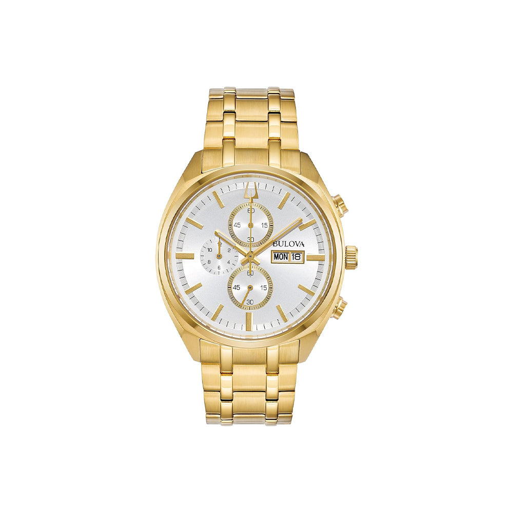Die Bulova Classic (Artikelnummer: 97C109) ist eine stilvolle und präzise Uhr, die ideal für den modernen Gentleman geeignet ist. Mit ihrem eleganten goldenen Edelstahlgehäuse und dem weißen Ziffernblatt zieht diese Uhr bewundernde Blicke auf sich. Sie kombiniert die Funktionalität eines Chronographen mit der Zuverlässigkeit eines Quarzuhrwerks, und das klassische Design sorgt für eine zeitlose Eleganz. Dank der praktischen Wochentags- und Datumsanzeige sowie der robusten Wasserdichtigkeit ist diese Uhr sowohl im Alltag als auch zu besonderen Anlässen perfekt geeignet.