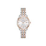 Bulova Classic (Artikelnummer: 96M174) ist eine elegante, schlanke Damenuhr, die minimalistisches Design mit zuverlässiger Technik kombiniert. Das polierte und gebürstete Edelstahlgehäuse wirkt hochwertig und modern, während das weiße Zifferblatt mit Sonnenschliff für eine klare und stilvolle Optik sorgt. Schwarze Zeiger und Stundenmarkierungen setzen einen edlen Kontrast und verbessern die Ablesbarkeit. Das Datumsfenster bei 3 Uhr ergänzt die Bulova Classic um eine praktische Funktion für den Alltag. Im Inneren arbeitet ein präzises Quarzwerk, das die Bulova Classic jederzeit zuverlässig antreibt und eine unkomplizierte Nutzung garantiert.