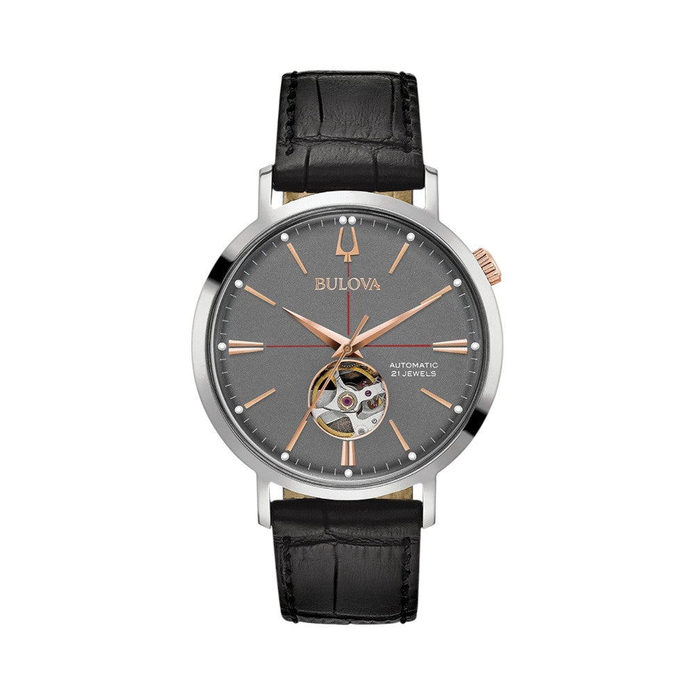 Die Bulova Classic 98A187 (Artikelnummer: 98A187) ist ein zeitloser Begleiter, der Eleganz und Präzision vereint. Mit ihrem Edelstahlgehäuse, einem grauen Zifferblatt und einem schwarzen Lederarmband setzt diese Uhr stilvolle Akzente. Sie ist die perfekte Wahl für Liebhaber klassischer Designs und hochwertiger Automatikwerke.