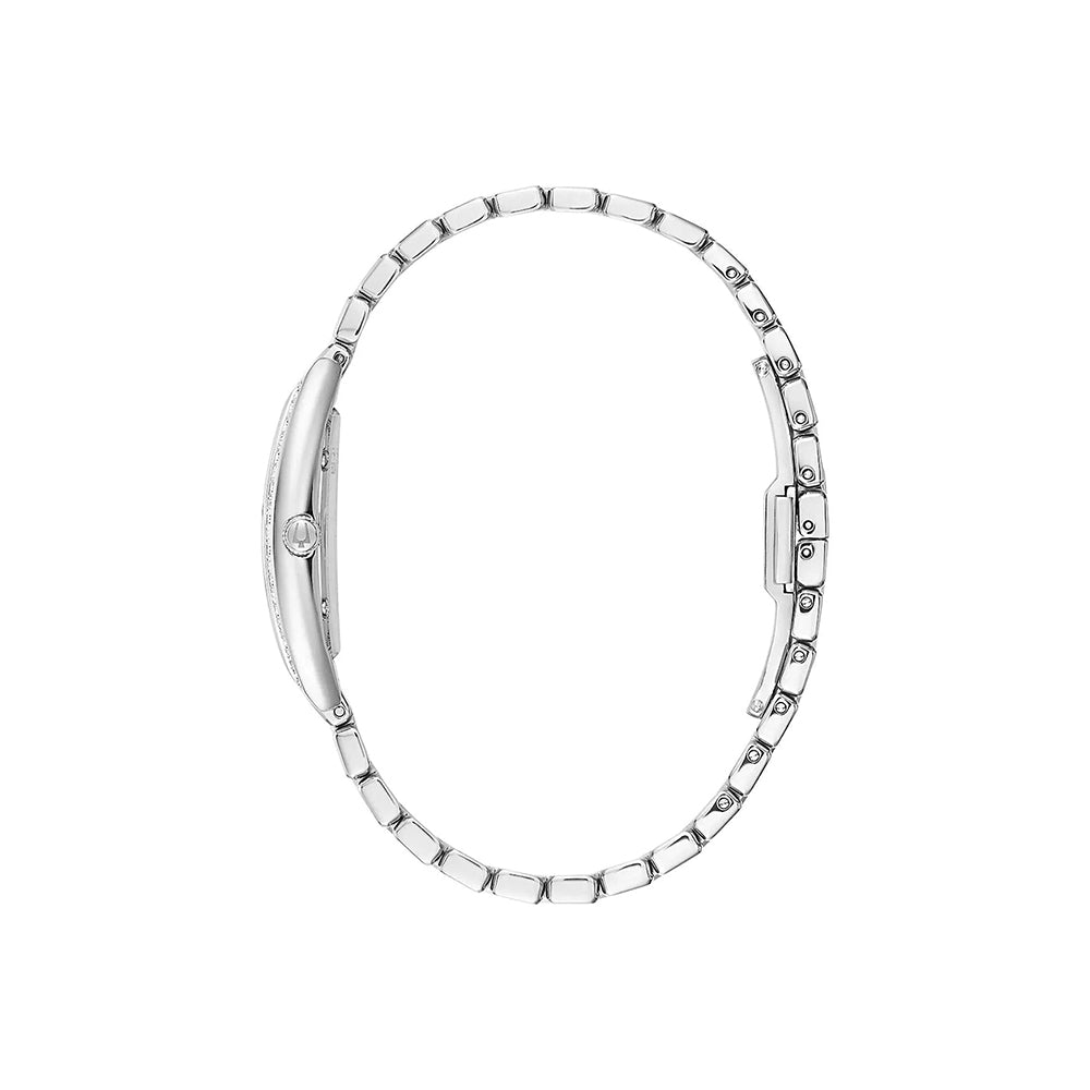 Die Bulova Diamond Damenuhr überzeugt nicht nur mit ihrem eleganten Design, sondern auch durch hohen Tragekomfort. Das hochwertige Edelstahlarmband mit einer Schmetterlingsschließe bietet sicheren Halt und ein angenehmes Tragegefühl. Mit einem Gewicht von nur 60 Gramm und einer Gehäusehöhe von 7 mm schmiegt sich die Uhr dezent und leicht an das Handgelenk an – perfekt für den Alltag und besondere Anlässe.