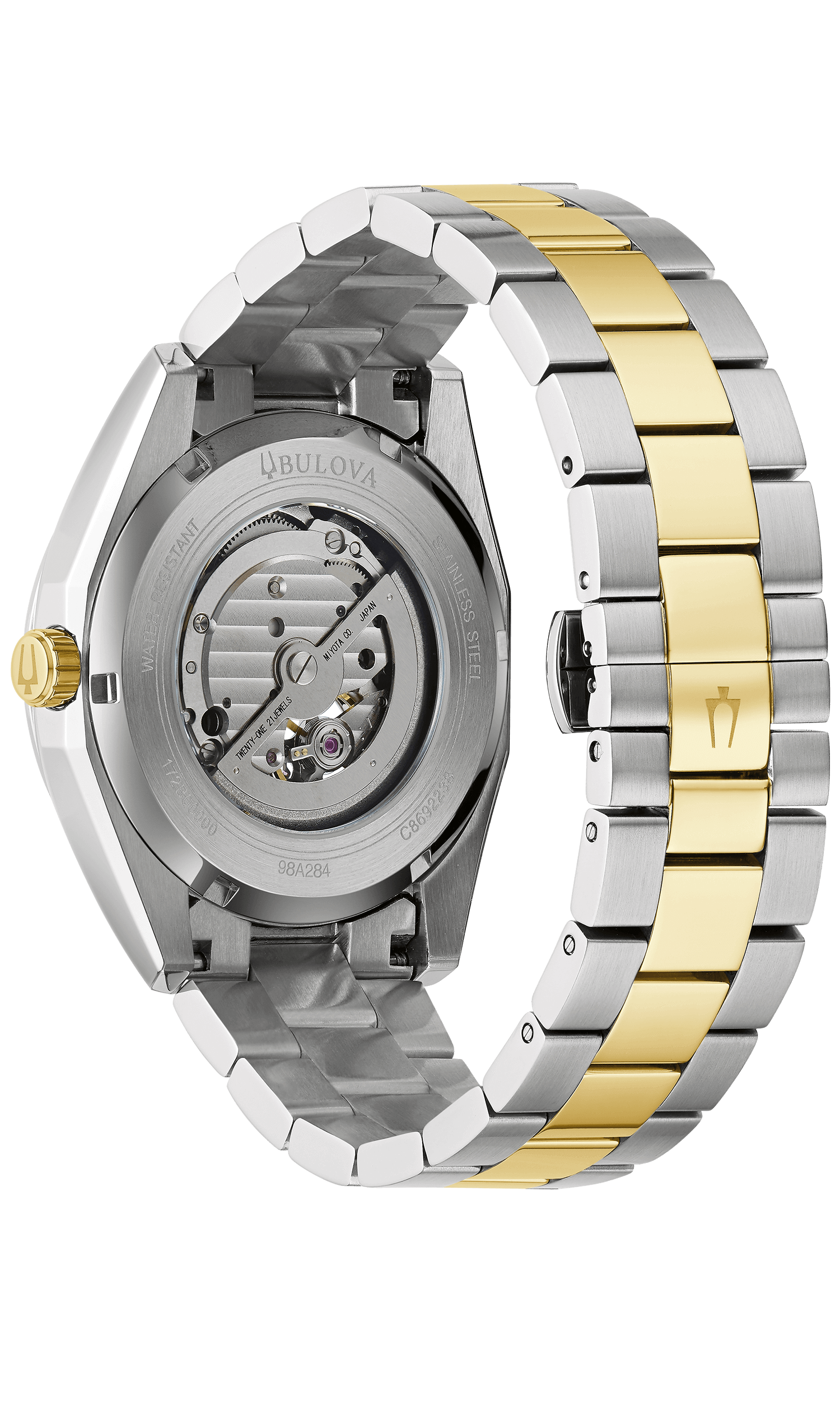Résumé: Die Bulova Herren Automatik Uhr 98A284 verkörpert zeitlose Eleganz in Verbindung mit moderner Technologie. Ihr Design strahlt Selbstbewusstsein aus, während das Automatik-Uhrwerk im Inneren für Präzision sorgt. Mit einem breiten, Edelstahlarmband in Gold und Silber ist diese Uhr nicht nur ein Accessoire, sondern ein Ausdruck von Stil und Komfort. Egal ob im Geschäftsalltag oder bei besonderen Anlässen, diese Uhr wird Sie begleiten und Ihre Persönlichkeit auf anspruchsvolle Art und Weise unterstreichen. Die Bulova Herren Automatik Uhr 98A284 ist mehr als nur ein Zeitmesser – sie ist ein Symbol für zeitlose Schönheit und technische Finesse, das Sie stolz am Handgelenk tragen können.