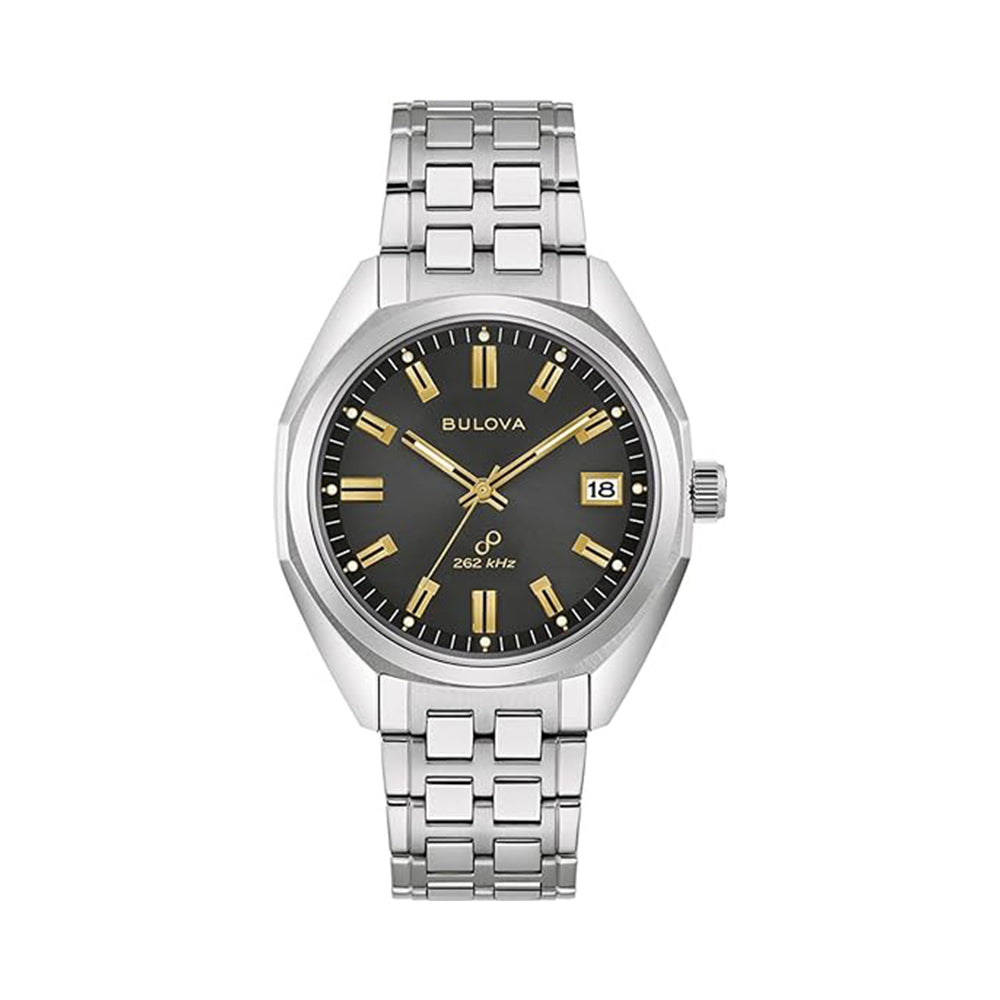 Die Bulova Jet Star (Artikelnummer: 96B415) ist eine Neuinterpretation des ikonischen Modells aus dem Jahr 1973. Mit einem beeindruckenden Uhrwerk kombiniert sie zeitloses Design mit moderner Technologie.