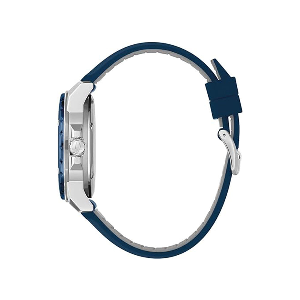 Das blaue Silikonarmband der Bulova Marine Star (Artikelnummer: 98A303) bietet einen angenehmen Tragekomfort und passt sich gut an das Handgelenk an. Die 3-teilige Dornschließe sorgt für einen sicheren Halt und ermöglicht einfaches An- und Ablegen der Uhr.