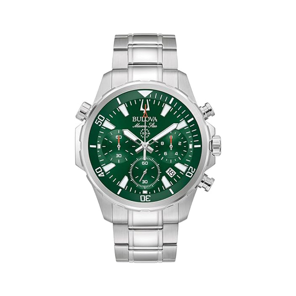 Die Bulova Marine Star - Chronograph Uhr (Artikelnummer: 96B395 oder 96B396) ist nicht nur ein Zeitmesser, sondern ein Statement für Stil und Präzision. Mit ihrem charakteristischen Design und ihrer hohen Wasserdichtigkeit von 10 bar ist sie der ideale Begleiter für alle Abenteuer.