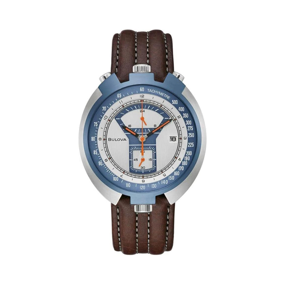 Die Bulova Parking Meter (Artikelnummer: 98B390) ist eine atemberaubende Re-Edition eines ikonischen Chronographen, der während des "Goldenen Zeitalters des Bulova-Chronographen" eingeführt wurde. Mit einem charakteristischen Zifferblattdesign, das an eine Parkuhr erinnert, und hochwertigen Funktionen wie Kalender, Tachymeter und Dualzeitring, ist diese Uhr ein begehrtes Sammlerstück und ein Must-Have für Liebhaber der Marke Bulova.