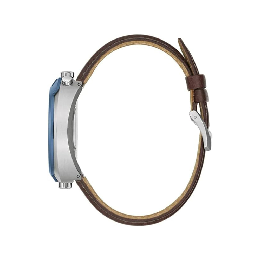 Das braune Lederarmband der Bulova Parking Meter (Artikelnummer: 98B390) bietet einen angenehmen Tragekomfort und passt sich perfekt an das Handgelenk an. Die Dornschließe sorgt für einen sicheren Halt und ermöglicht ein einfaches An- und Ablegen der Uhr.