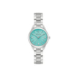 Die Bulova Sutton (Artikelnummer: 96P253) ist eine elegante Damenuhr, die ein klassisches Design mit modernen Akzenten vereint. Sie verfügt über ein ionenplattiertes Edelstahlgehäuse und -armband in Silber, das sich durch seine Langlebigkeit und seinen zeitlosen Stil auszeichnet. Mit einem Durchmesser von 28 mm und einem gewölbten Kristallglas bietet diese Uhr eine perfekte Balance zwischen Eleganz und Funktionalität. Das hellblaue Ziffernblatt mit drei funkelnden Diamanten und einem präzisen Analog-Quarzwerk sorgt für eine hohe Genauigkeit von +/- 20 Sekunden pro Monat.