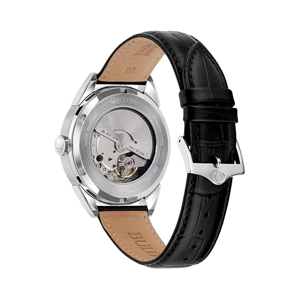 Die Bulova Sutton Herrenuhr (Artikelnummer: 96B422) ist eine klassische Automatikuhr, die Eleganz und Funktionalität perfekt vereint. Mit ihrem präzisen Automatik-Uhrwerk, dem Edelstahlgehäuse und dem hochwertigen Kalbslederarmband ist sie der ideale Begleiter für den modernen Mann von heute.