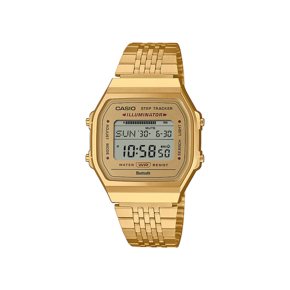 Die Casio ABL-100WEG-9AEF (Artikelnummer: ABL-100WEG-9AEF) ist eine stilvolle Kombination aus klassischem Retro-Design und moderner Technologie. Diese Casio Vintage Iconic Digitaluhr bietet praktische Funktionen wie Bluetooth-Konnektivität, Schrittzählermessung und Dualzeit. Mit ihrem goldfarbenen Edelstahlarmband und dem eleganten Resin-Gehäuse ist sie ein perfektes Accessoire für einen gesundheitsbewussten Lebensstil.