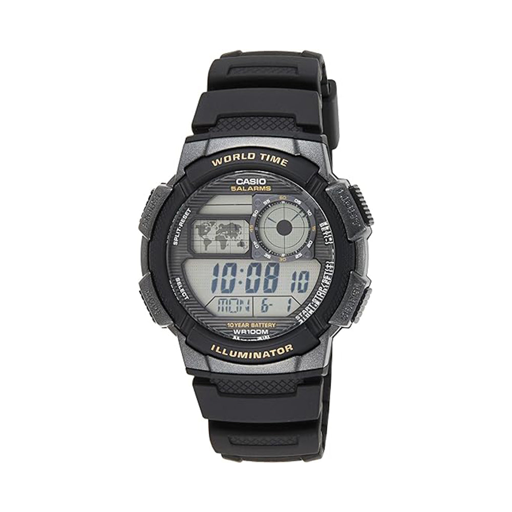 Die Casio AE-1000W-1AVEF (Artikelnummer: AE-1000W-1AVEF) ist eine hochfunktionale Digitaluhr mit einem Design, das an Fluginstrumente im Cockpit von Flugzeugen erinnert. Mit ihrer Weltzeitfunktion, Stoppuhr, Timer, Alarmen und vielen weiteren Funktionen ist sie der ideale Begleiter für Abenteurer und Reisende.