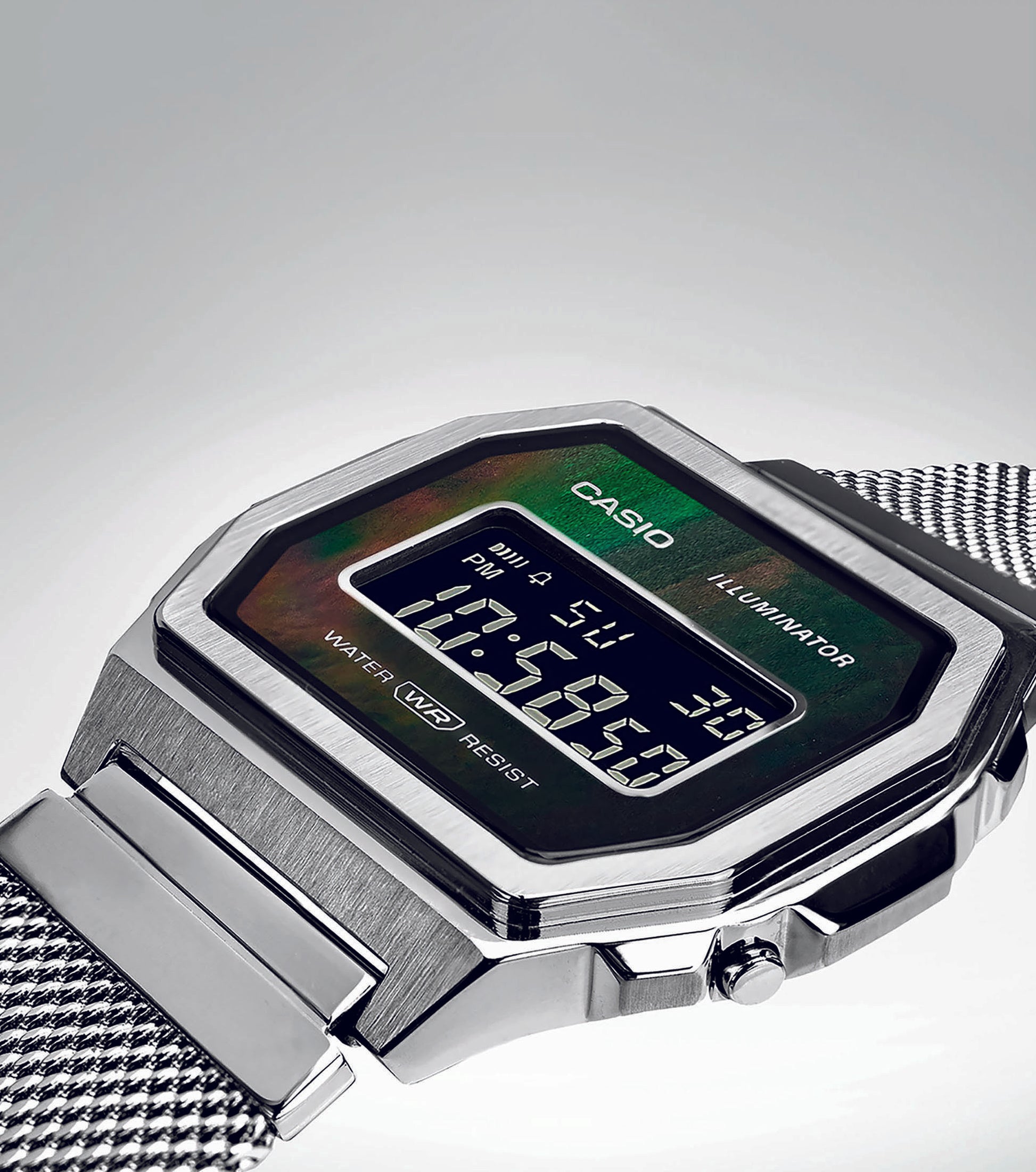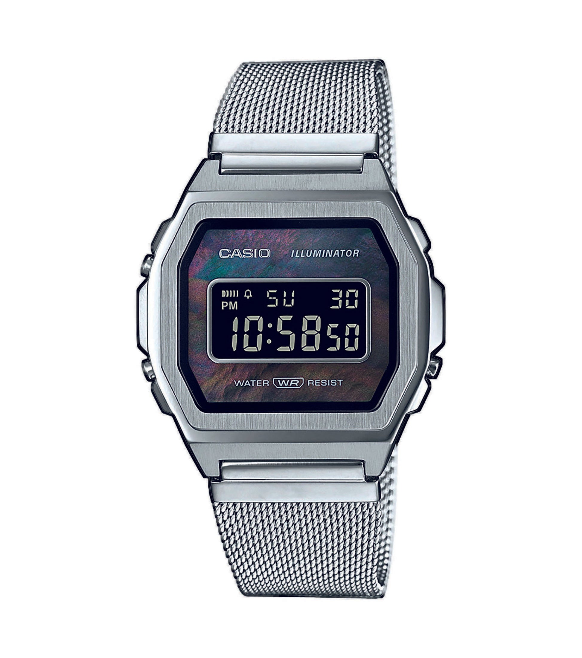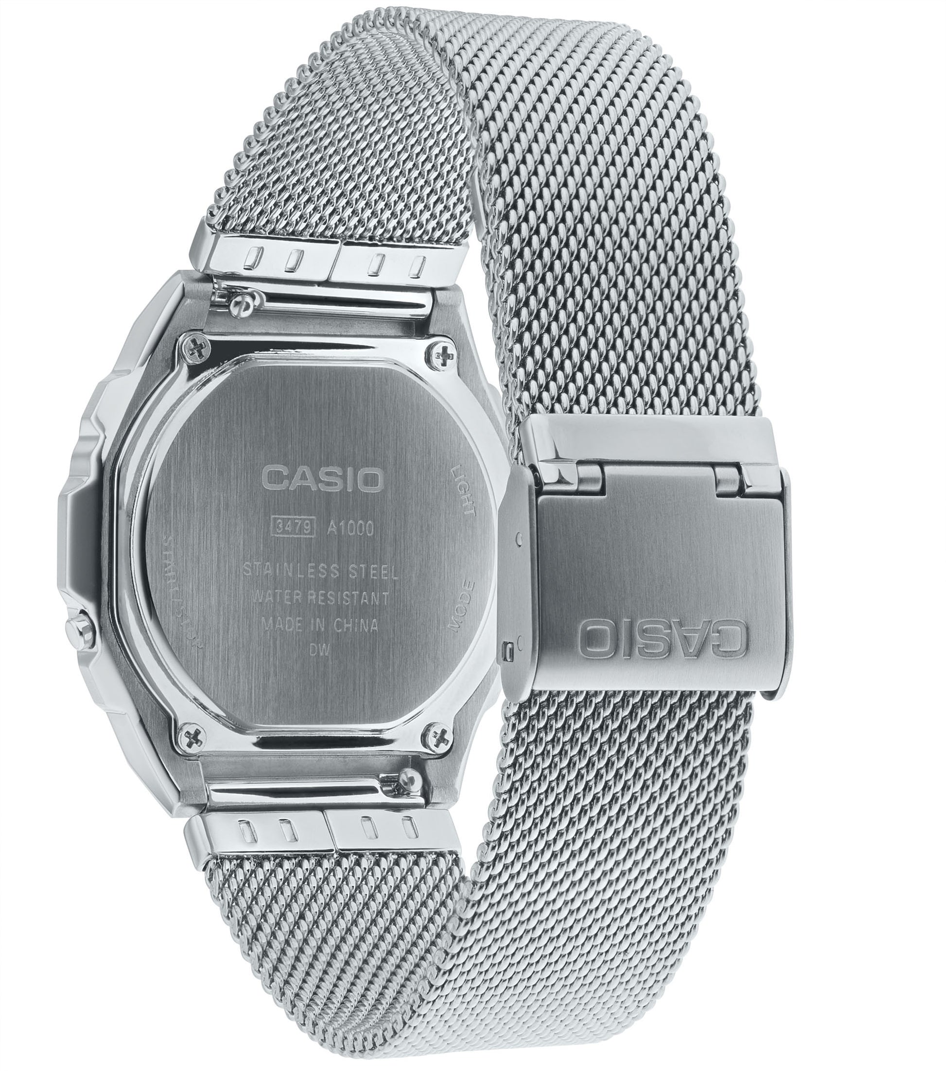 Farbdetails: Die Casio Collection Damen Digital Uhr A1000M-1BEF präsentiert sich in zeitlosem Silber. Das Zifferblatt ist elegant in Schwarz gehalten, während die Lünette ebenfalls aus Edelstahl gefertigt ist. Diese Farbkombination verleiht der Uhr einen klassischen und dennoch modernen Look.