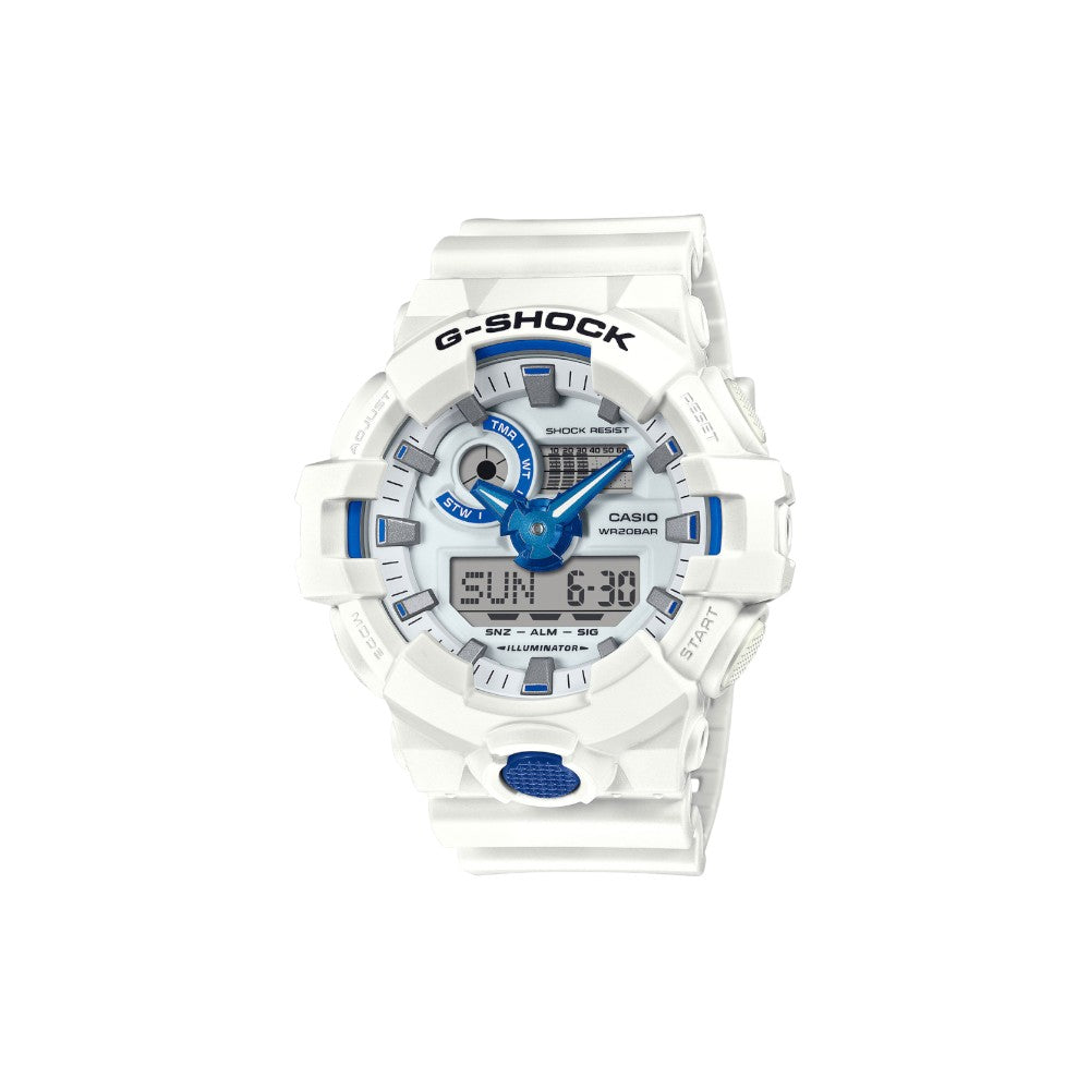 Mit der Casio GA-700HDS-7AER bekommst du eine zuverlässige und funktionsreiche G-Shock Uhr, die durch ihr markantes Design, hohe Belastbarkeit und umfangreiche Funktionen überzeugt. Ob bei Sport, Reisen oder im Alltag – die Kombination aus LED-Superbeleuchtung, Countdown-Timer, Weltzeit und robustem Resin macht diese Uhr zu einem kraftvollen Statement am Handgelenk. Für alle, die Funktion und Style schätzen, ist sie die perfekte Wahl.