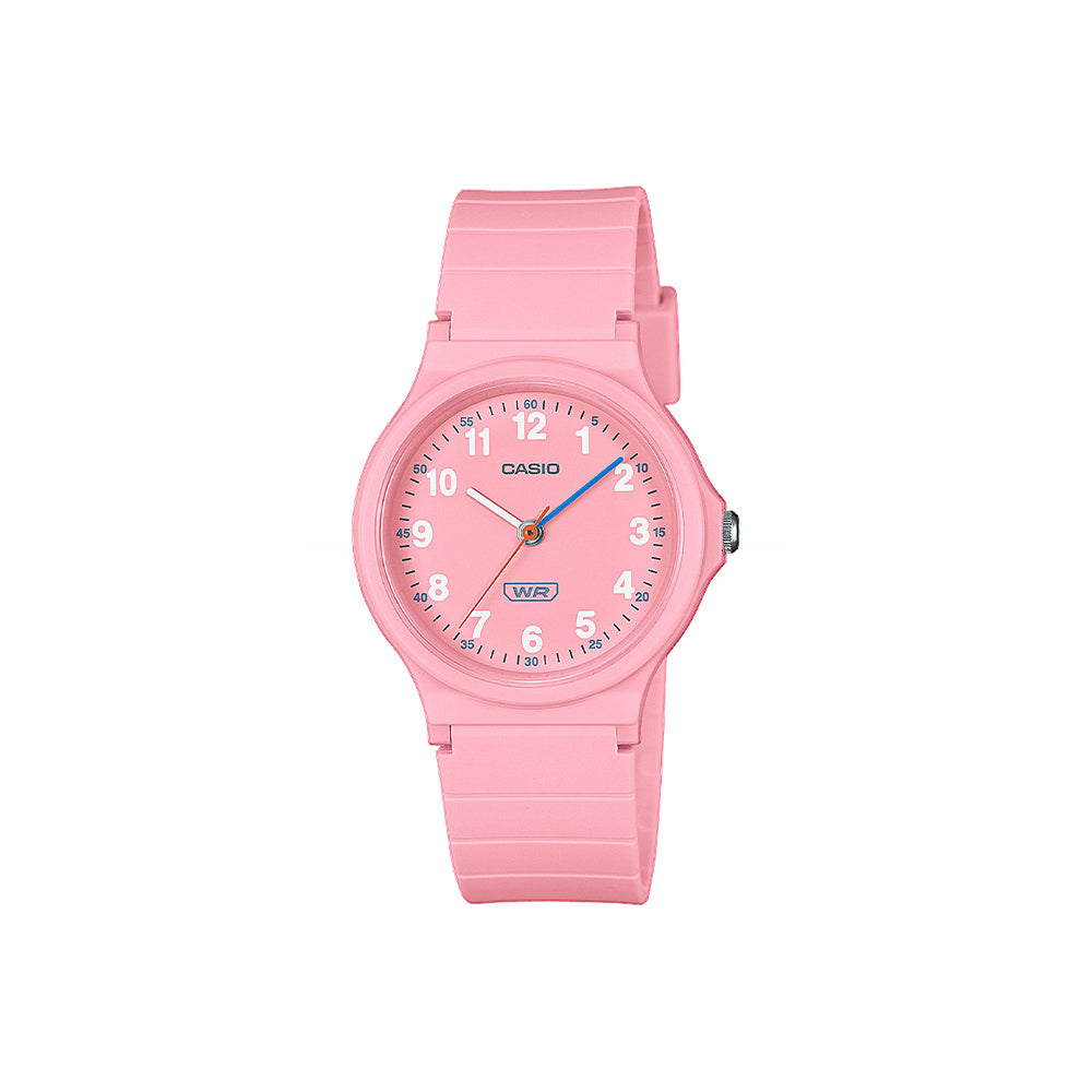 Die Casio LQ-24B-4BEF (Artikelnummer: LQ-24B-4BEF) ist eine elegante, analoge Uhr, die durch ihre schlichte Schönheit und ihre praktischen Funktionen besticht. Mit einem Gehäusedurchmesser von nur 30 mm und einer Höhe von 8 mm bietet diese Uhr eine komfortable Passform, die sowohl für zierliche als auch für größere Handgelenke geeignet ist. Die rosa Farbe von Zifferblatt und Armband sorgt für einen modernen Look und macht sie zu einer idealen Wahl für modebewusste Träger. Das Quarz-Uhrwerk garantiert eine präzise Zeitmessung, während das Mineral Glas und das robuste Harzgehäuse die Uhr besonders langlebig machen. Diese Uhr ist die perfekte Kombination aus Stil und Funktion.