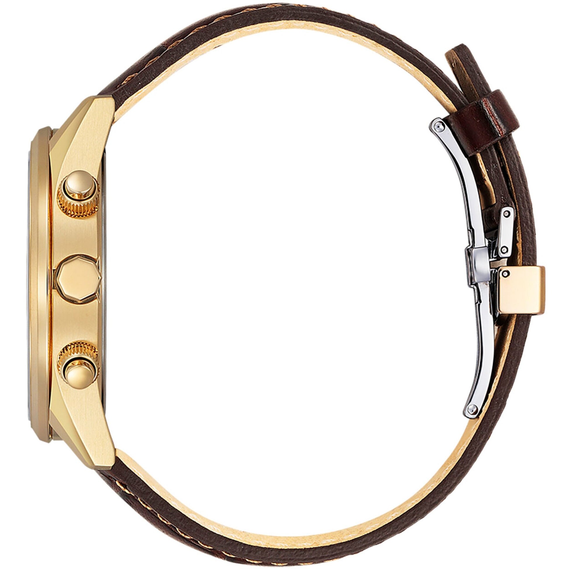 Der Tragekomfort dieser Uhr ist unschlagbar, obwohl die genaue Bandbreite nicht angegeben ist. Das braune Armband harmoniert perfekt mit dem goldfarbenen Gehäuse und verleiht der Uhr eine warme, klassische Note. Tragen Sie diese Uhr den ganzen Tag über bequem und stilvoll.