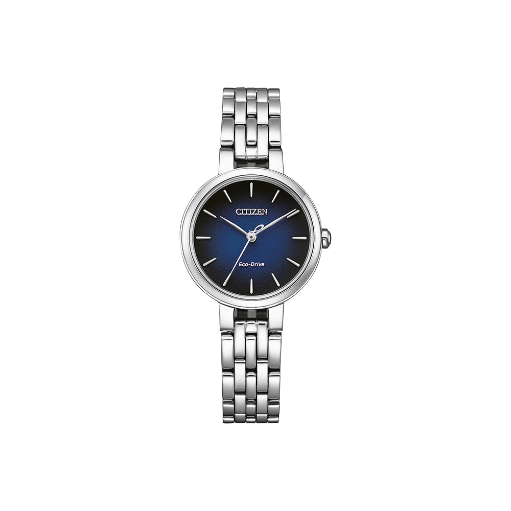Die Citizen EM0990-81L (Artikelnummer: EM0990-81L) ist eine elegante Damenarmbanduhr, die zeitloses Design mit innovativer Technologie kombiniert. Das silberfarbene Edelstahlgehäuse mit einem Durchmesser von 27,7 mm verleiht ihr eine filigrane, aber dennoch robuste Optik. Ihr tiefblaues Zifferblatt mit feinen Strichindizes sorgt für eine stilvolle und klare Darstellung der Zeit. Dank des Saphirglases bleibt das Zifferblatt dauerhaft geschützt. Mit der zuverlässigen Eco-Drive-Technologie bietet diese Uhr eine Gangreserve von bis zu 180 Tagen und benötigt keine Batterie – ein echtes Highlight für moderne Frauen, die Wert auf Nachhaltigkeit legen.