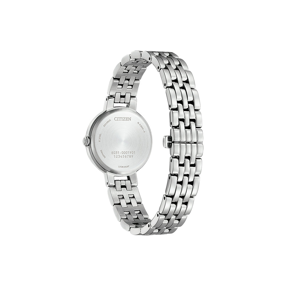 Die Citizen EM0990-81L besticht nicht nur durch ihr edles Design, sondern auch durch ihren hohen Tragekomfort. Das massive Edelstahlarmband liegt angenehm auf der Haut und sorgt mit seiner durchdachten Verarbeitung für ein leichtes und dennoch sicheres Tragegefühl. Mit einem Gewicht von nur 59 g ist diese Uhr kaum spürbar und eignet sich perfekt für den täglichen Gebrauch.