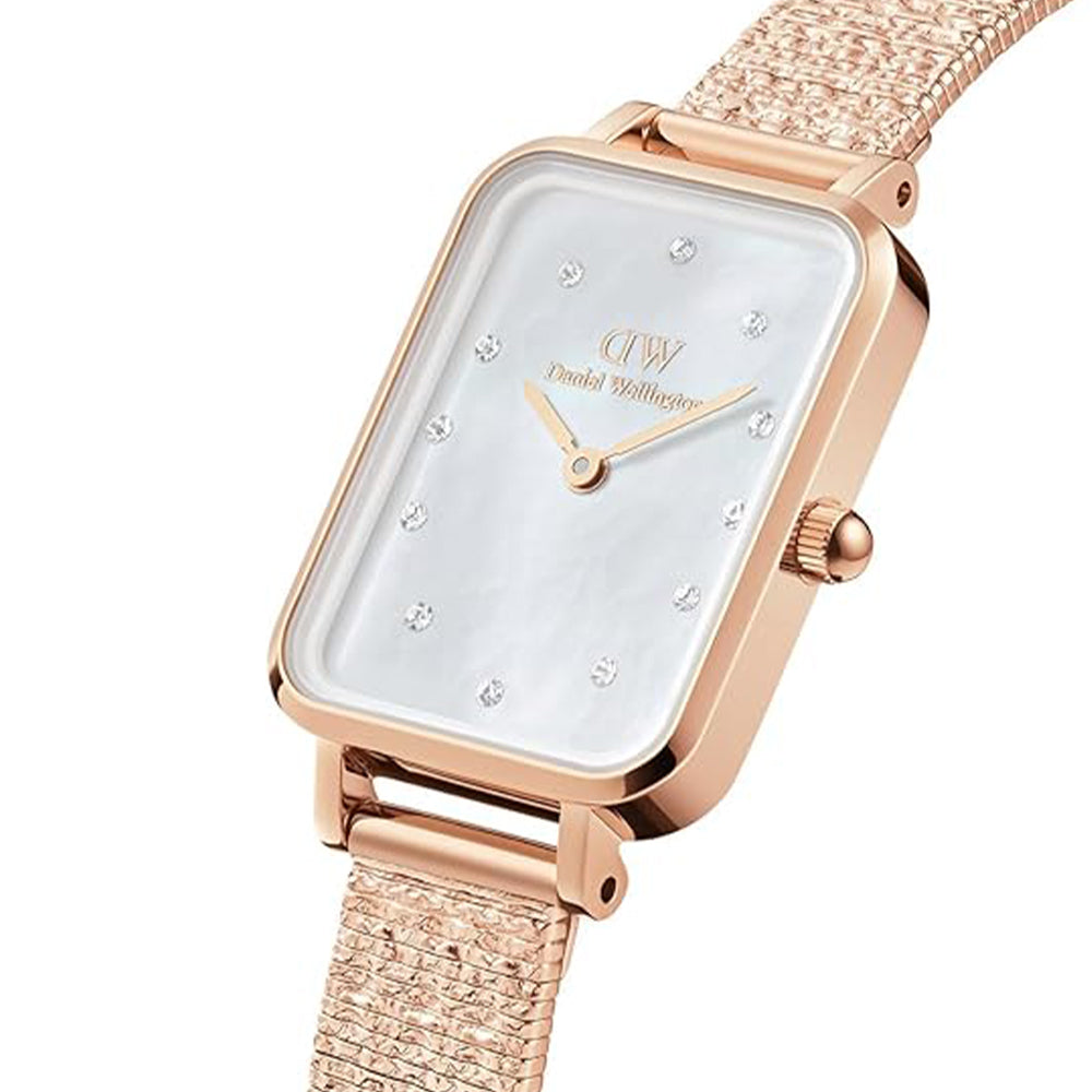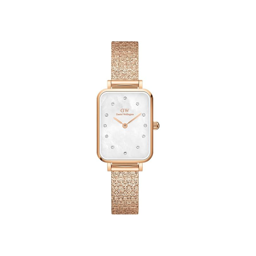 Die Daniel Wellington Quadro Lumine Pressed Piano bietet außergewöhnlichen Tragekomfort durch ihr leichtes Armband aus zweifach beschichtetem Edelstahl. Das Roségold-Finish und das innovative Pressed Piano Link-Design sorgen dafür, dass die Uhr angenehm am Handgelenk sitzt und sich ideal für den täglichen Gebrauch eignet.