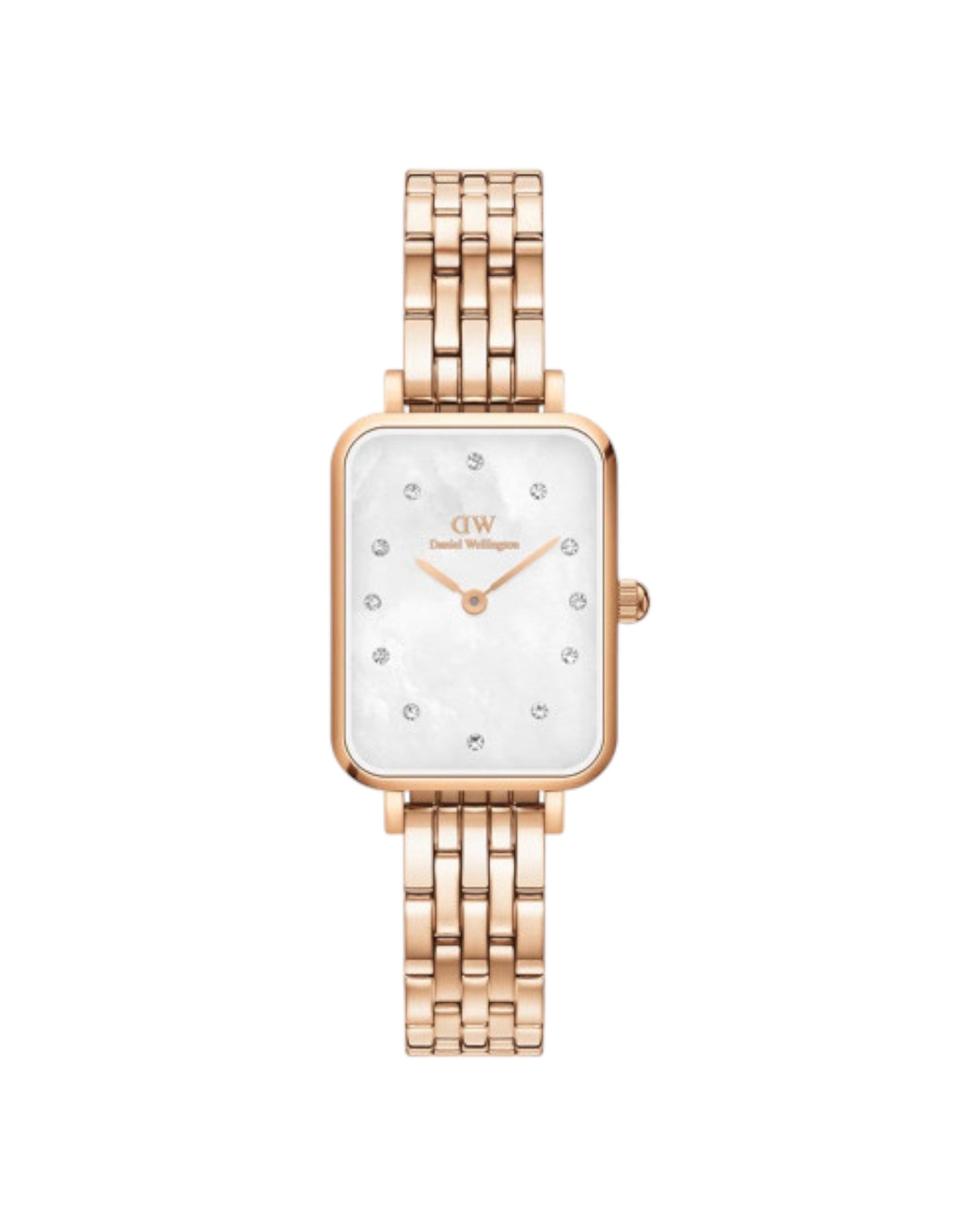 Die Daniel Wellington Quadro Uhr DW00100620 ist eine elegante Damenuhr mit minimalistischem Design. Sie ist aus hochwertigem Edelstahl gefertigt und verfügt über ein weißes Perlmuttzifferblatt mit roségoldenen Zeigern und Indizes. Die Uhr wird von einem zuverlässigen Quarzwerk angetrieben und ist bis 3 bar wasserdicht. Das roségoldene Edelstahlarmband mit Schließe sorgt für einen angenehmen Tragekomfort und rundet das elegante Erscheinungsbild der Uhr perfekt ab.