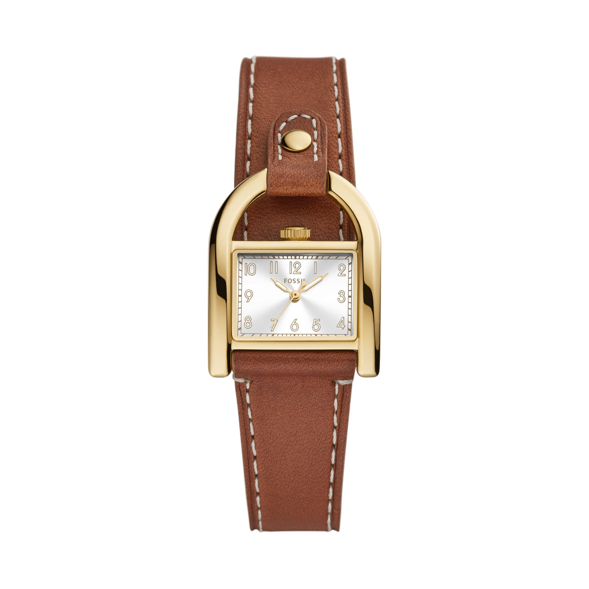 Die Fossil Damenuhr ES5264 ist eine Uhr für Frauen, die Wert auf zeitlose Eleganz und Qualität legen. Die Kombination aus goldfarbenem Edelstahl und braunem Leder macht sie zu einem vielseitigen Accessoire, das zu jedem Outfit passt.
