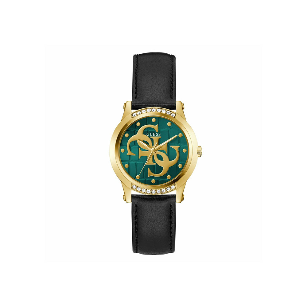 Die Guess Annette (Artikelnummer: GW0860L6) ist eine elegante Damenuhr, die mit ihrem polierten goldenen Edelstahlgehäuse und dem schwarzen Kalbslederarmband überzeugt. Diese Guess Annette vereint modernes Design mit funktionaler Präzision und ist der ideale Begleiter für stilbewusste Damen, die Wert auf zeitgemäßen Look und zuverlässige Technik legen.