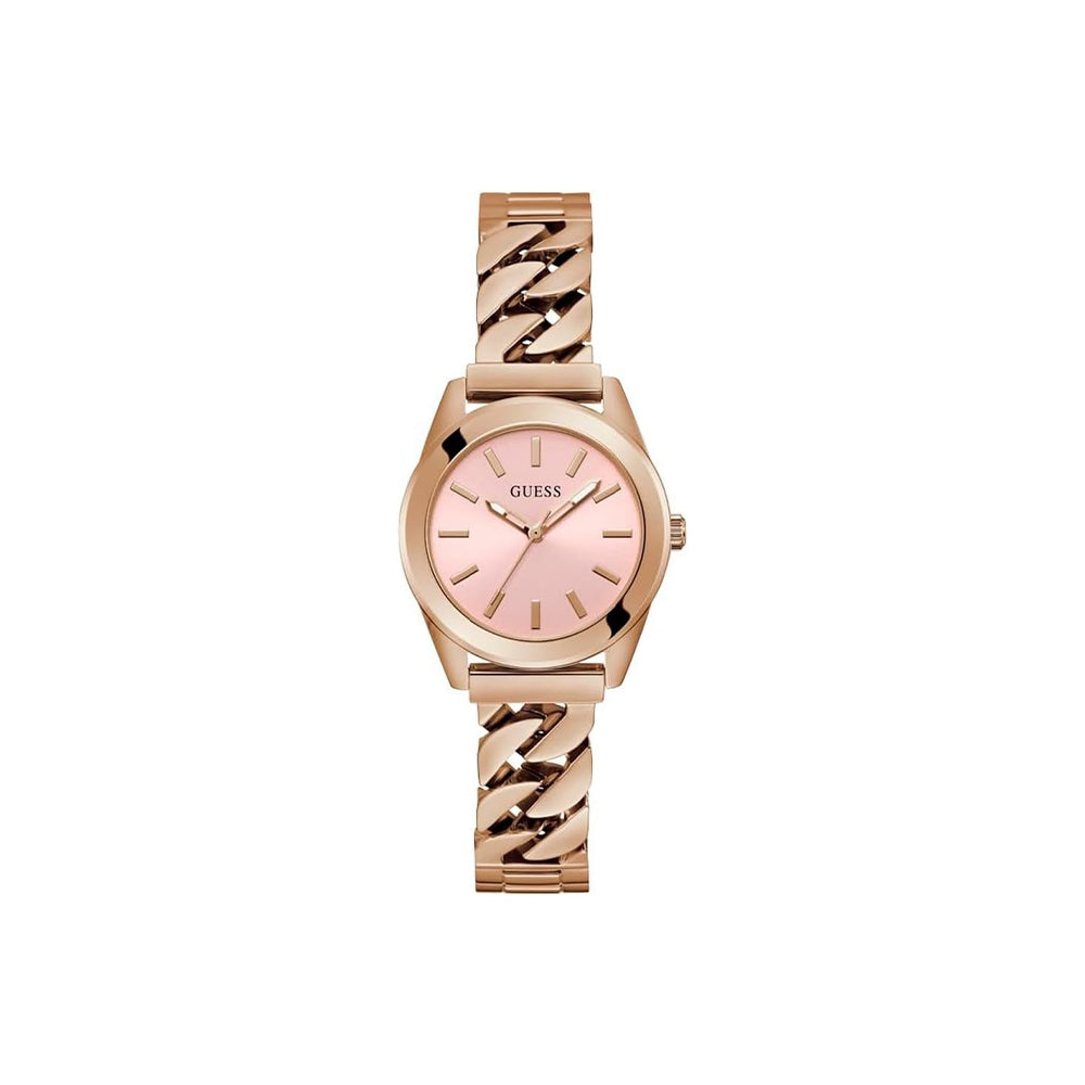 Die Guess Bejeweled Serena (Artikelnummer: GW0653L2) ist eine elegante Damenuhr, die Stil und Glamour perfekt kombiniert. Mit ihrem roségoldfarbenen Edelstahlgehäuse und dem passenden Armband setzt sie ein luxuriöses Statement. Das zarte rosa Zifferblatt sorgt für eine feminine Note und macht die Uhr zu einem idealen Begleiter für stilbewusste Frauen.