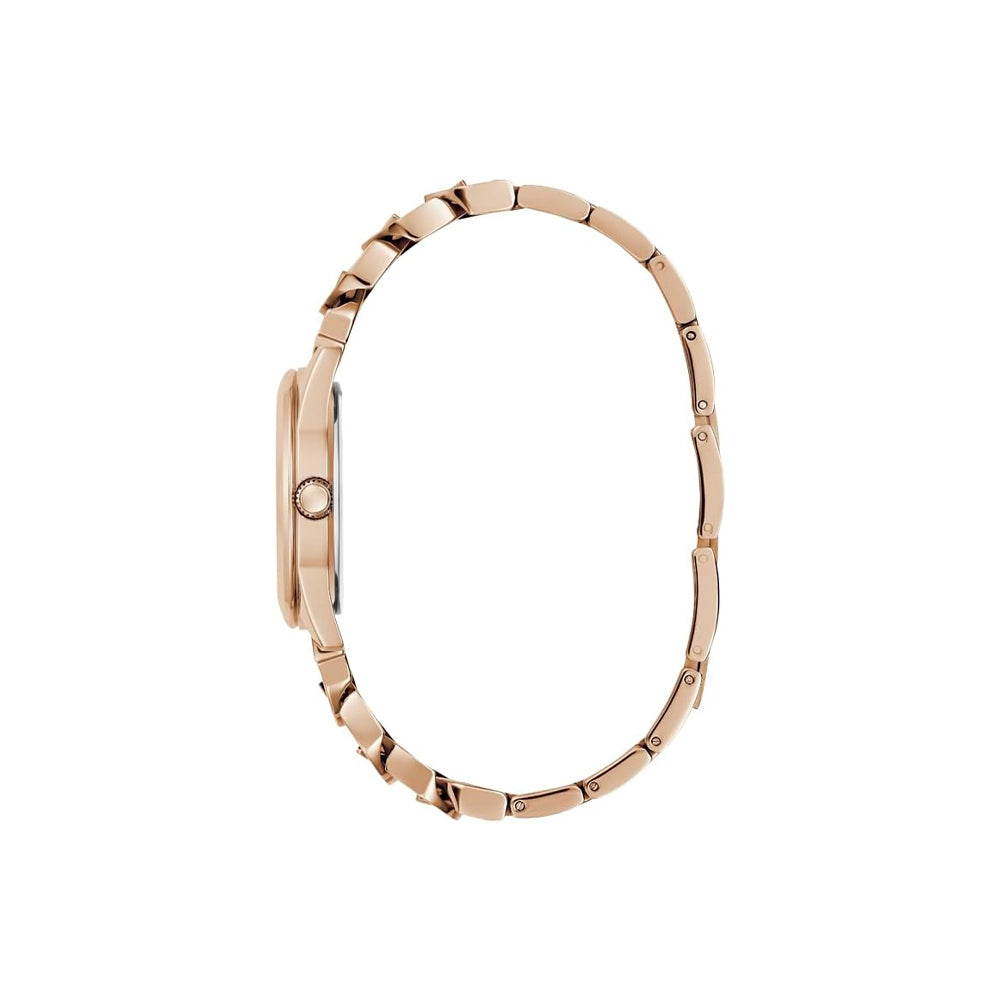 Dank des hochwertigen Edelstahlarmbands bietet die Guess Bejeweled Serena optimalen Tragekomfort. Der praktische Klappverschluss sorgt für einen sicheren Halt am Handgelenk und lässt sich mühelos an- und ablegen. Mit einer Breite von 16 Millimetern und dem schlanken Design trägt sich die Uhr angenehm und leicht – perfekt für den Alltag oder besondere Anlässe.