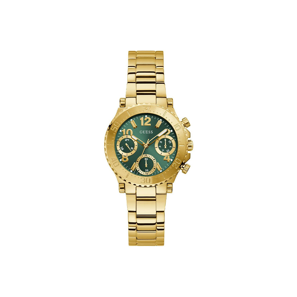 Die Guess Cosmic ist eine Uhr, die mit kosmischer Eleganz und modischer Klarheit begeistert. Ihr faszinierendes grünes Zifferblatt und das edle goldene Design verleihen jedem Outfit das gewisse Etwas. Diese Damenuhr steht für Selbstbewusstsein, Stil und Raffinesse – ein echtes Highlight für Frauen, die ihren Look bewusst gestalten. Die Guess Cosmic ist mehr als eine Uhr – sie ist ein Ausdruck Ihrer Persönlichkeit.