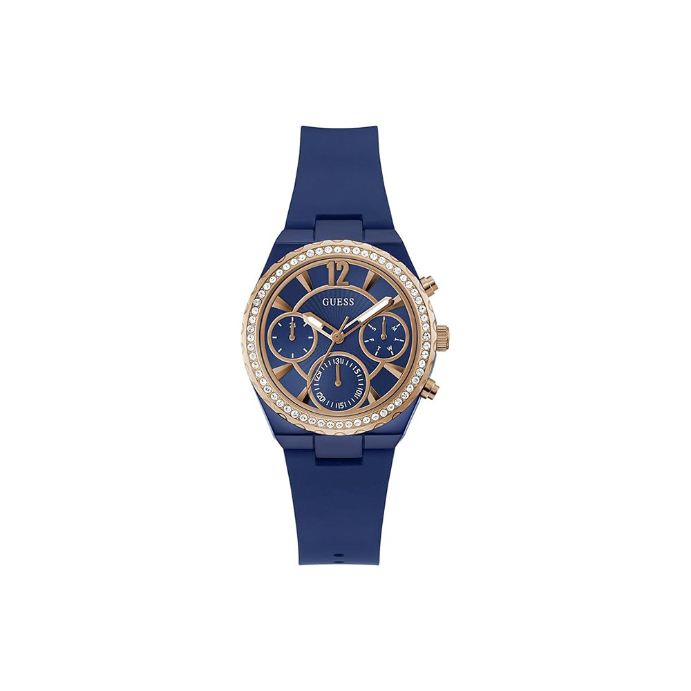 Die Guess Diana (Artikelnummer: GW0697L3) ist eine stilvolle Damenuhr, die modernes Design und funktionale Ausstattung elegant miteinander verbindet. Sie besticht durch ein zweifarbiges Kunststoffgehäuse mit 36 mm Durchmesser sowie ein harmonisch abgestimmtes blaues Polyurethanarmband. Das gleichfarbige blaue Zifferblatt wird durch eine widerstandsfähige Mineralglaslinse geschützt. Als Chronograph mit Quarzwerk bietet die Guess Diana zuverlässige Leistung bei stilvollem Auftreten – ideal für Frauen mit modischem Anspruch.
