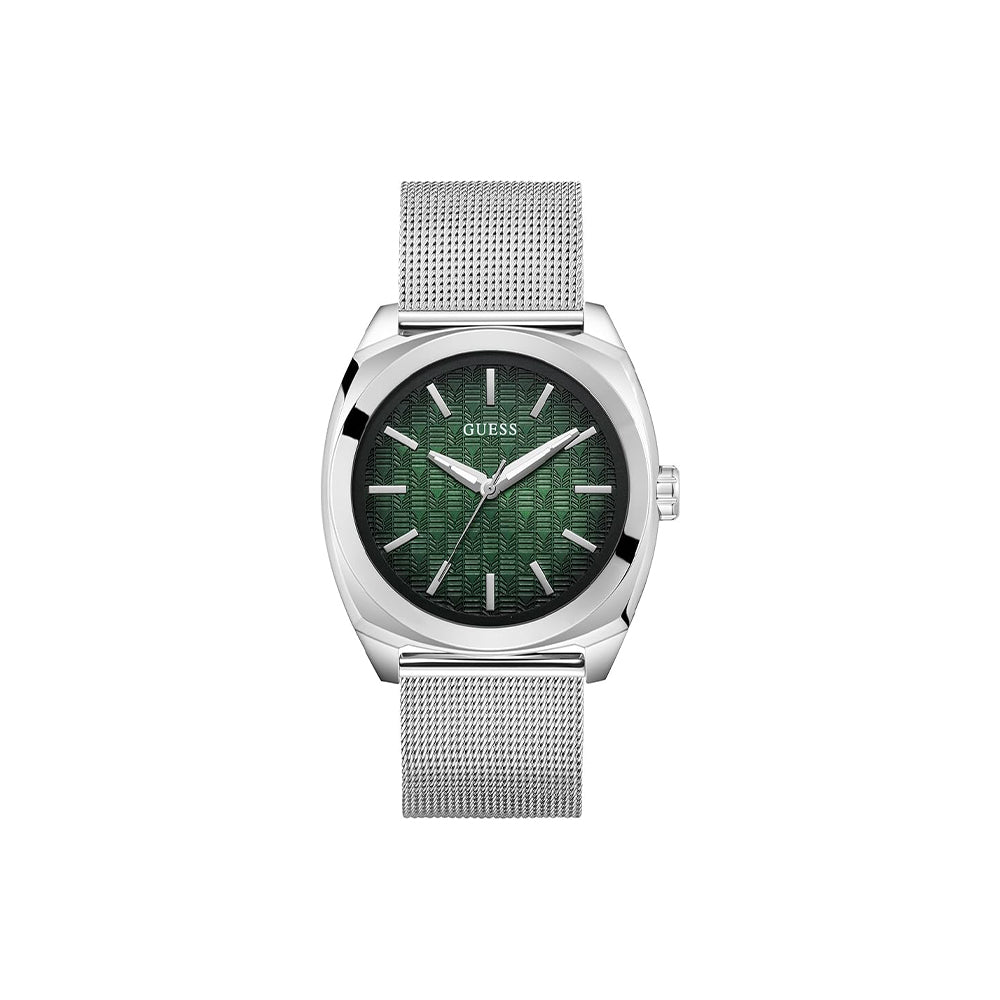 Die Guess Dress Marshall (Artikelnummer: GW0794G1) vereint Eleganz mit sportlichem Design und ist der ideale Begleiter für stilbewusste Herren. Mit ihrem silberfarbenen Edelstahlgehäuse und dem auffälligen grünen Zifferblatt setzt sie modische Akzente. Die präzise Quarztechnologie und das robuste Mineralglas sorgen für Zuverlässigkeit und Langlebigkeit. Dank ihrer Wasserdichtigkeit bis 5 Bar ist sie bestens für den Alltag geeignet.