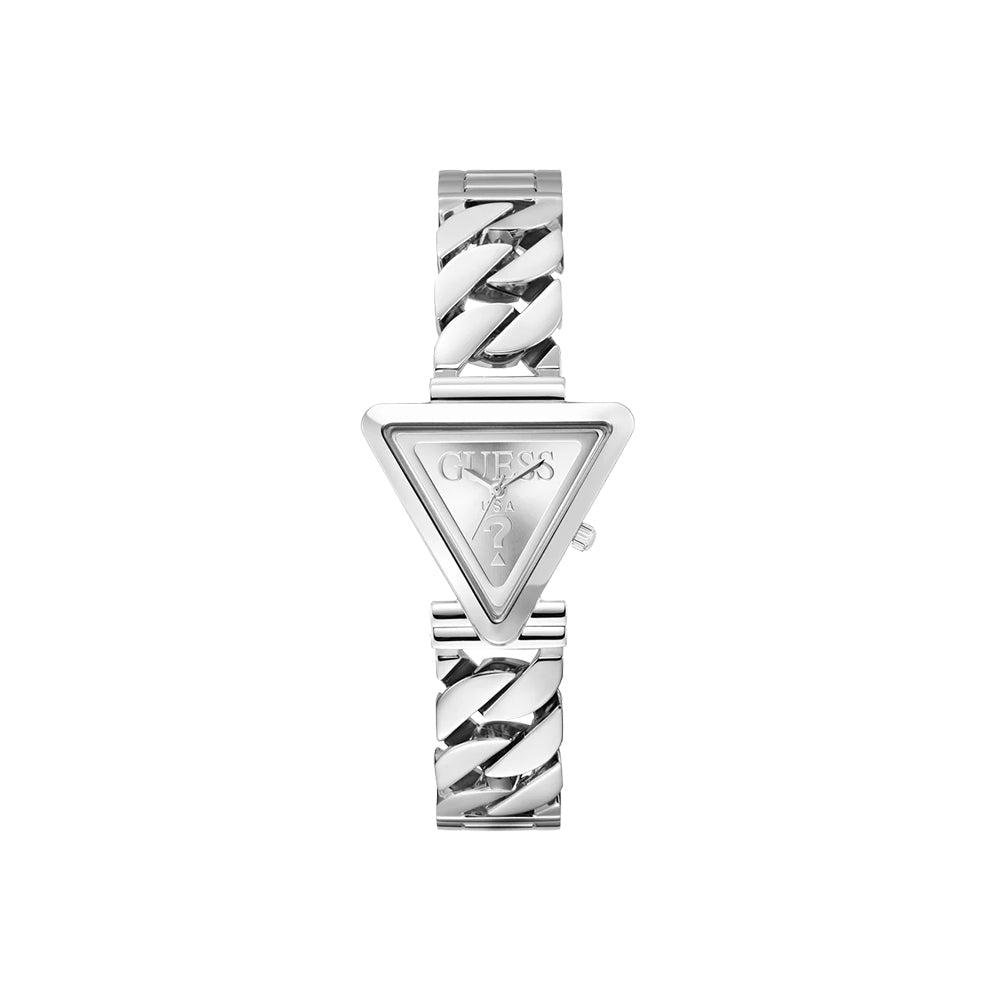 Die Guess Fame besticht durch ihr innovatives Dreieck-Design und die Verwendung von recyceltem Stahl, wodurch sie sowohl optisch als auch ökologisch überzeugt. Mit ihrem eleganten Silberton ist sie ein zeitloses Schmuckstück, das Nachhaltigkeit und Stil perfekt vereint. Diese Uhr ist ein unverwechselbares Accessoire für Frauen, die einen modernen Look mit Verantwortung kombinieren möchten.