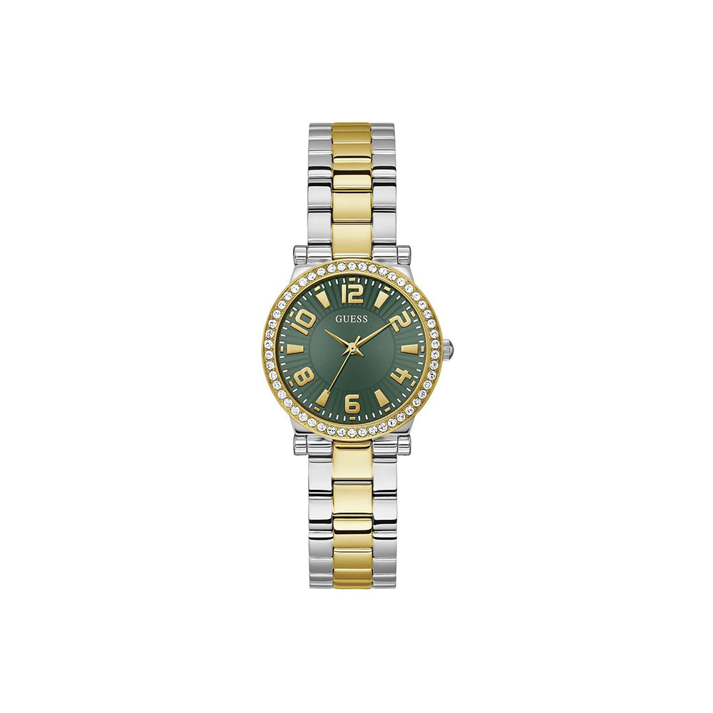 Die Guess Fawn ist ein feminines Accessoire mit klassischer Note und einem Hauch luxuriöser Eleganz. Sie verkörpert stilbewusste Weiblichkeit und unterstreicht jede Garderobe mit einem raffinierten Touch. Das grüne Zifferblatt setzt einen modischen Akzent, während das glänzende Edelstahlgehäuse und die Zirkonia-Details für das gewisse Etwas sorgen. Die Guess Fawn ist die perfekte Wahl für alle, die Mode und Funktionalität in einer Uhr vereinen möchten – dezent, elegant und absolut zeitgemäß.