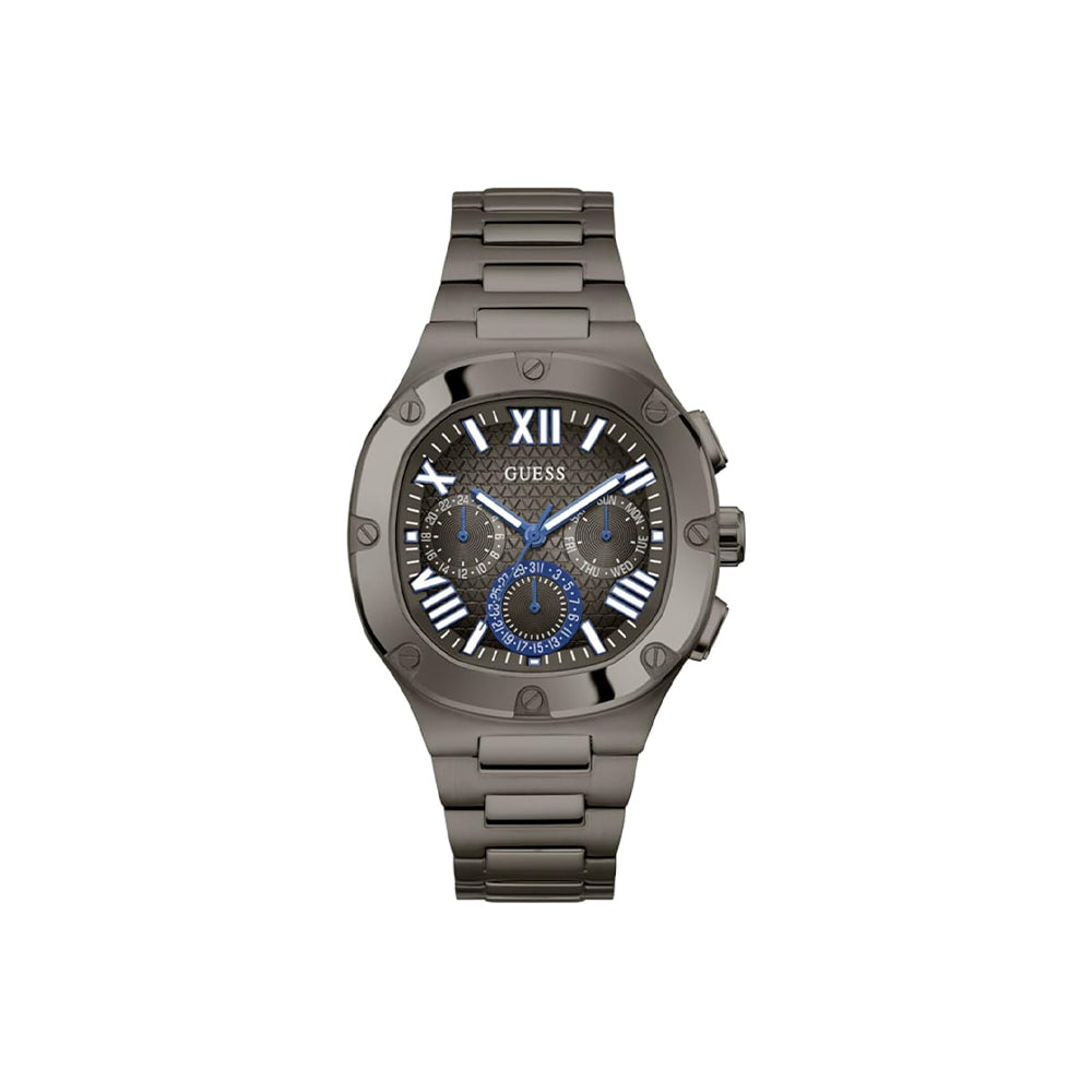 Die Guess Headline vereint zeitloses Design mit funktionaler Eleganz. Ihr robustes Edelstahlgehäuse und die schicke Farbkombination machen diese Uhr zu einem einzigartigen Begleiter, der in keinem Männerarmband fehlen darf.