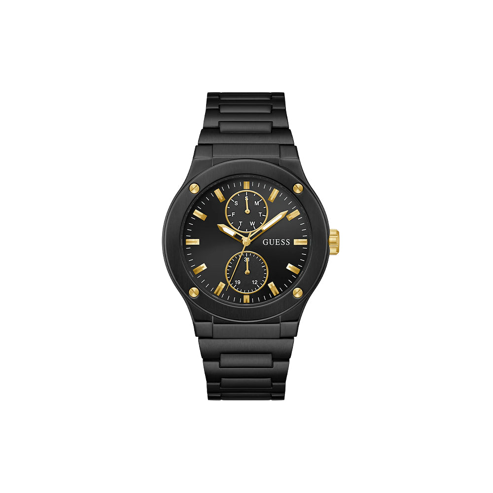 Das Edelstahlarmband der Guess Jet sorgt für einen angenehmen Sitz am Handgelenk, wobei die Breite von 22 mm eine ideale Balance zwischen Komfort und Präsenz bietet. Der praktische Druckknopfverschluss garantiert sicheren Halt und leichtes An- und Ablegen. Mit ihrem 45 mm großen Gehäuse passt die Guess Jet perfekt zu jedem modernen Alltagslook und bietet dabei ein komfortables Tragegefühl den ganzen Tag.