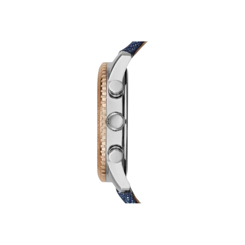 Die Guess Marina W1057L1 (Artikelnummer: W1057L1) ist eine elegante Damenarmbanduhr, die modernes Design und Funktionalität vereint. Ihr 38 mm großes Edelstahlgehäuse, das navyblaue Zifferblatt und das hochwertige Lederarmband sorgen für einen stilvollen Look. Die Uhr wird von einem zuverlässigen Quarzwerk angetrieben und bietet eine Wasserdichtigkeit bis 5 bar.