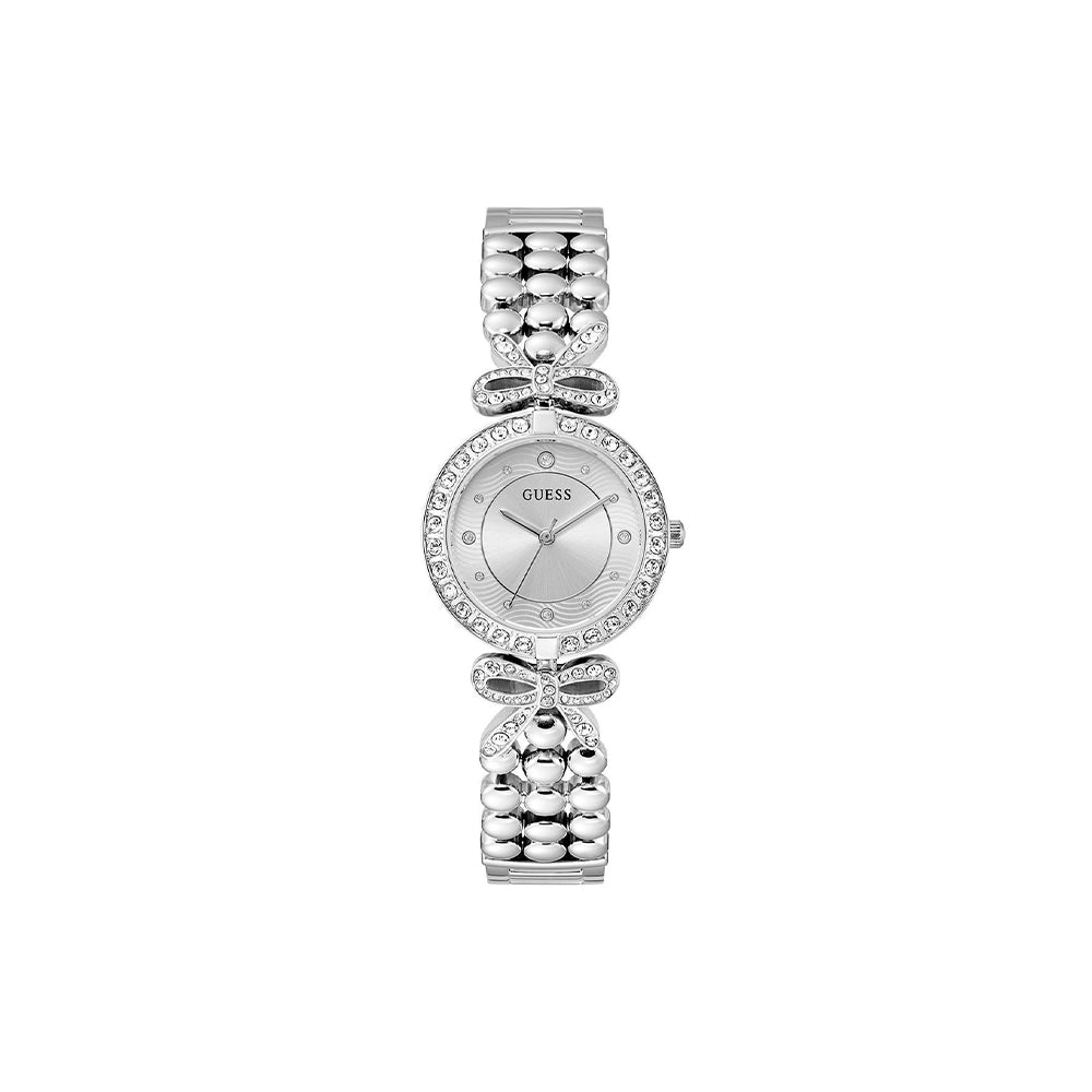 Die Guess Ribbon (Artikelnummer: GW0838L1) ist eine elegante Damenuhr, die mit ihrem silbernen Edelstahlgehäuse und der polierten Oberfläche ein stilvolles Highlight setzt. Diese Guess Ribbon besticht durch ein modernes Design mit funkelnden Zirkonia-Steinen und eignet sich perfekt für Damen, die eine zeitgemäße und zugleich modische Uhr suchen.