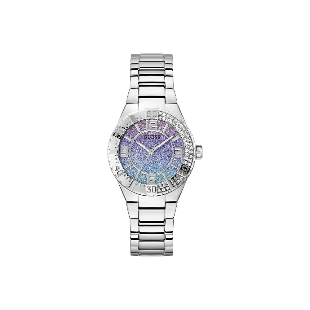 Die Guess Sangria besticht nicht nur durch ihr Design, sondern auch durch hohen Tragekomfort. Das silberfarbene Edelstahlarmband mit 16 mm Breite schmiegt sich angenehm ans Handgelenk und sorgt mit der praktischen Faltschließe für sicheren Halt. Die kompakte Gehäusegröße von 36 mm macht diese Uhr zum idealen Begleiter für den Alltag und besondere Anlässe.