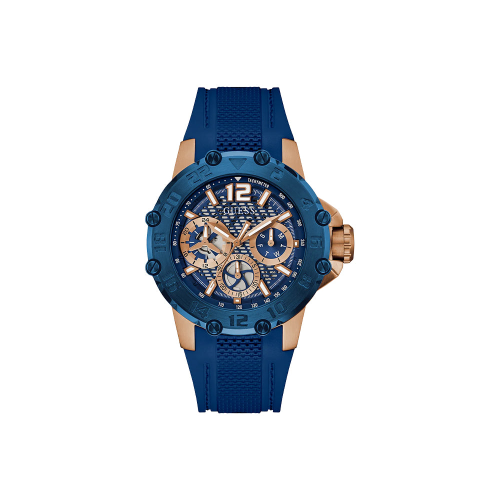 Die Guess Sport Contender (Artikelnummer: GW0640G3) ist eine beeindruckende Uhr, die für aktive Männer konzipiert wurde. Sie bietet ein robustes, zweifarbigen Edelstahlgehäuse mit einem Durchmesser von 46 mm und einer Höhe von 18 mm. Das blau gehaltene Zifferblatt harmoniert perfekt mit dem blauen Silikonarmband, was der Uhr eine sportliche Eleganz verleiht. Mit einem präzisen Quarzwerk und einer Wasserdichtigkeit von 50 m ist die Guess Sport Contender der ideale Begleiter für Abenteuer und den Alltag.