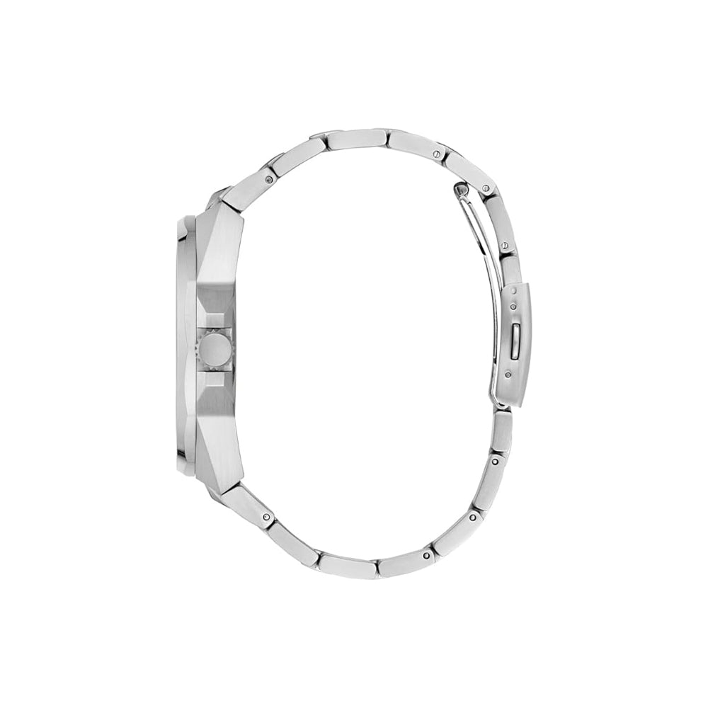 Die Guess Sport Dashboard bietet außergewöhnlichen Tragekomfort durch ihr breites Armband aus gebürstetem und poliertem Edelstahl. Die Faltschließe ermöglicht ein einfaches An- und Ablegen der Uhr, während das leichte Design dafür sorgt, dass sie angenehm am Handgelenk sitzt. Egal ob beim Sport oder in der Freizeit, diese Uhr passt sich deinem Lebensstil perfekt an.